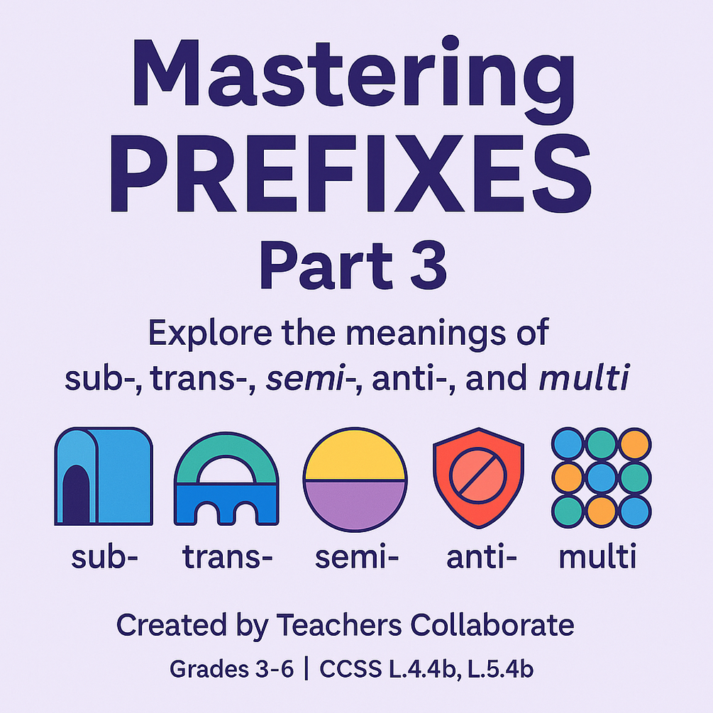 “Mastering Prefixes: Part 3 – Chapters 11 to 15” (Covers: sub-, trans-, semi-, anti-, multi-)