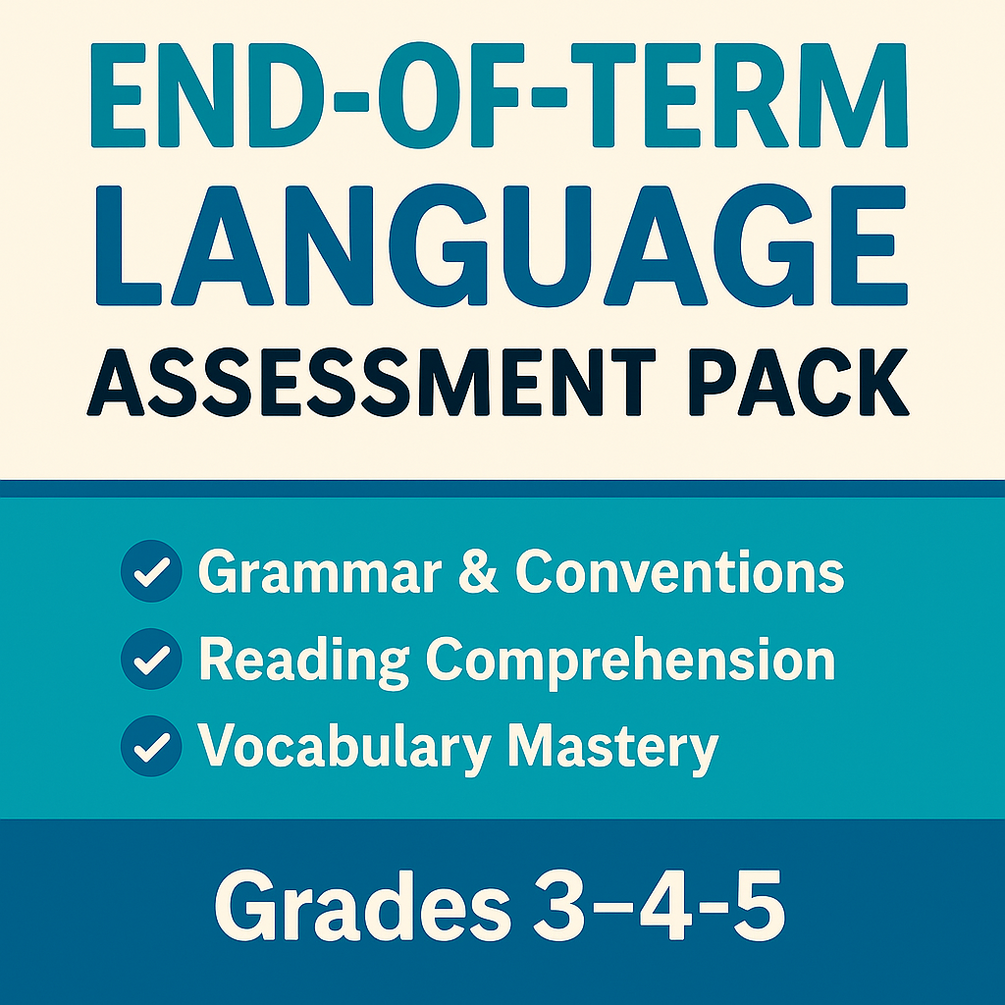 Make end-of-term evaluation stress-free and standards-aligned with this comprehensive Language Assessment Pack for Grades 3, 4, and 5. This resource includes three complete levels of engaging and rigorous assessments in: